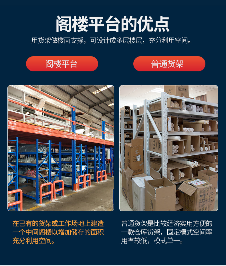 2、閣樓平臺的目的地,我們銷售貨架涉及全國,目的地距離的遠近也會直接影響到貨架運費,距離越近運費則越便宜,不過我們也都有配送部門,會根據采購量安排適合的運輸車,合理控制運輸成本.