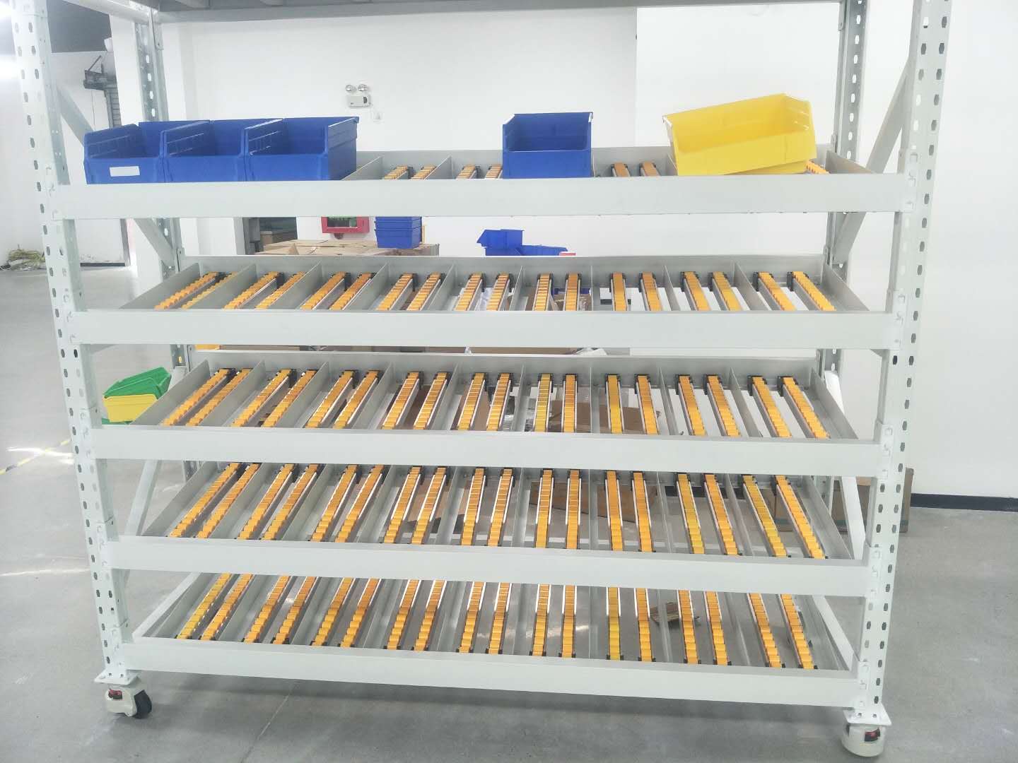 流利式貨架廣泛應用于制造業,商業,配送中心,裝配車間以及出貨頻率較高的倉庫流利式貨架,采用滾輪鋁合金,鈑金等流利條,利用臺架自重實現先進先出,存儲方便,適用于裝配線兩側配送中心等場所.