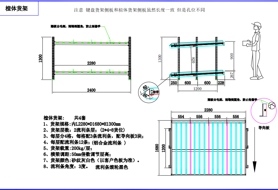 上圖是我們司給聯(lián)想公司生產(chǎn)的流利式貨架,貨架參數(shù)是:L2140*W1500*H1750 三層流利條 每層分3格、每層配3條流利條,配導(dǎo)向板2塊、每層配9條流利條(鋁合金流利條)每層載重200KG 橫梁調(diào)距是50mm倍數(shù)調(diào)節(jié)層高。貨架顏色:以客戶樣本為準(zhǔn) 流利條的角度為3度,流利條滾輪黑色.